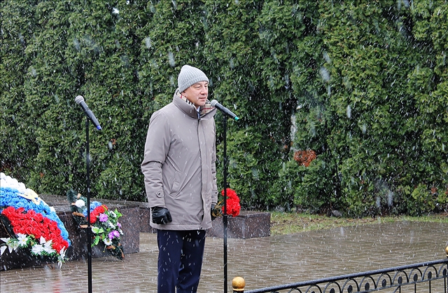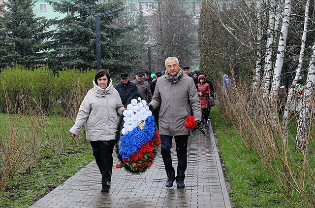 Далее собравшиеся почтили память погибших ликвидаторов минутой молчания и возложили цветы и венки к памятнику.