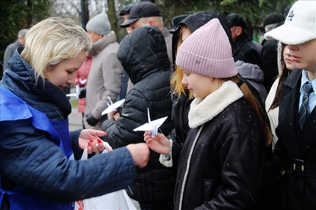 В финале всем участникам митинга вручили бумажных птиц, как символ мира и счастья.