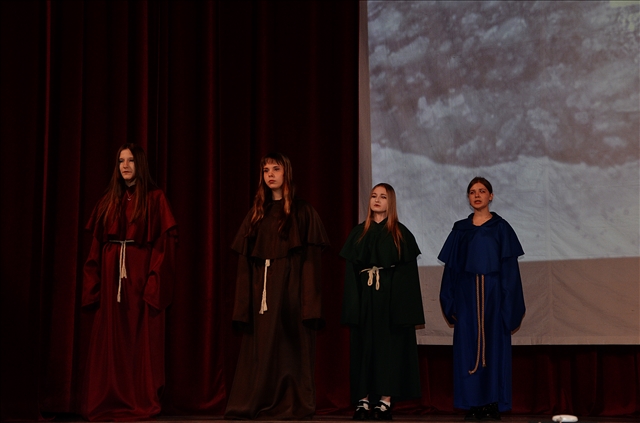 В спектакле приняли участие 8 монахов-сказителей: Полина Байбакова, Екатерина Косинова, Софья Малыхина, Анастасия Колонтаева, Елизавета Филатова, Иван Суворов, Эмилия Савицкая, Алиса Ильясова. Режиссер постановки Игорь Чемоданов сыграл главную роль – Ивана Ростка, Михаил Лаврищев сыграл роль председателя колхоза. Украсили программу танцевальные номера шоу-группы «Импульс» и «Яблочки» (рук. Л. Гаппель). Главная цель – обретение веры достигнута, зрители с удовольствием наградили актёров за игру аплодисментами.